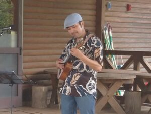 生まれも育ちも広島のカワムラさんによるウクレレ演奏。 |
